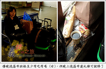 我四處張望,一位看起來像是東方自助客的年輕男子,在看了我幾次之後,在回座位時,順道用韓語跟我打了招呼,我聽不懂,看他一副鎮定的樣子,想必是熟門熟路,不用理他也沒關係(雖然我正處於亂七八糟的狀態,但我還挺有自信,我「應該」還是比其他旅客更搞得清楚狀況)。倒是另一組看起來像是日本人的兩個年輕女生同時吸引了我跟老婆的注意,並不是我「不使鬼」結婚了還在看美眉,而是她們拉著行李從月台走出來時,就是一臉不知往哪走的模樣,還馬上找了當地人求救,一看就知道這兩個人問題可能比我們還大。因為,在這個時候大包小包到這裡轉車的東方臉孔,若不是旅居當地,一定跟我們目的地相同,而且若不是跟我們一樣錯過車,一定是完全搞不清楚狀況才這麼不知死活。